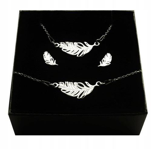 Komplet srebrny PIÓRKA PIÓRA piórko 50 cm PUDEŁKO