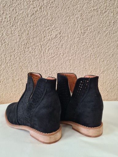 ЧЕРНЫЕ ЗАМШЕВЫЕ АЖУРНЫЕ БОТИНКИ НА СКРЫТОЙ ТАНКЕТЕ BELLA PARIS Размер 41