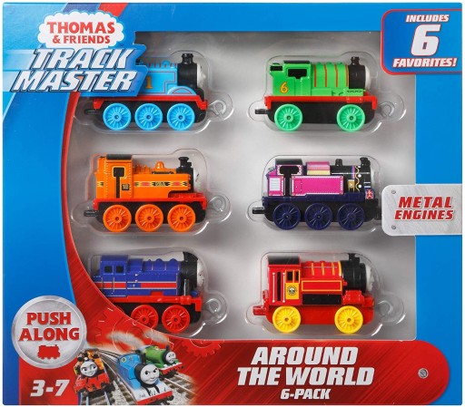 Ten 6-pak lokomotywek TrackMaster Push Along z odlewanego ciśnieniowo metalu pokazuje międzynarodowych przyjaciół, z którymi Tomek zaprzyjaźnił się podczas swojej podróży.
