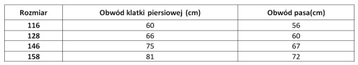 - odzież dostępna w wielu rozmiarach