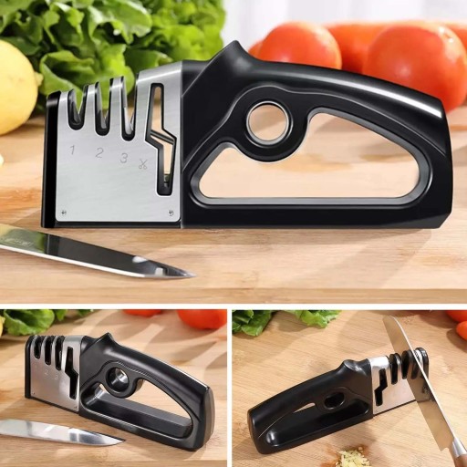 Wielofunkcyjna ostrzałka do noży 4w1 to ergonomicznie zaprojektowane narzędzie niezbędne w każdej kuchni. Przeznaczona do ostrzenia nożyczek, noży stalowych oraz ceramicznych.