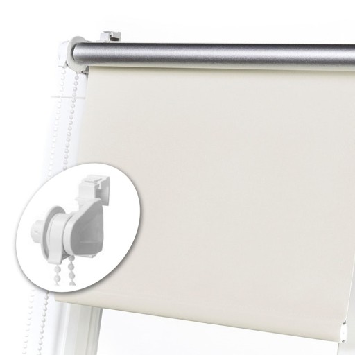 Mechanizm rolety w kolorze białym. Istnieje możliwość zmiany akcesoriów na kolor brązowy, należy wtedy dokonać zakupu na dedykowanej aukcji.