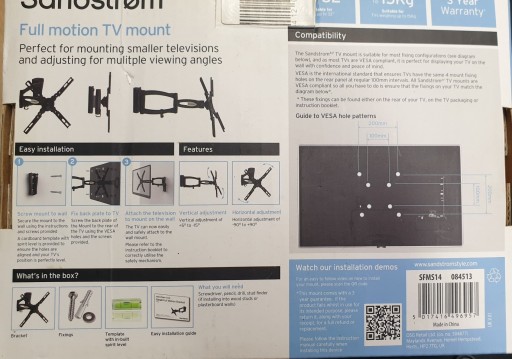 - Sandstrom SFMS14 Full Motion TV Bracket