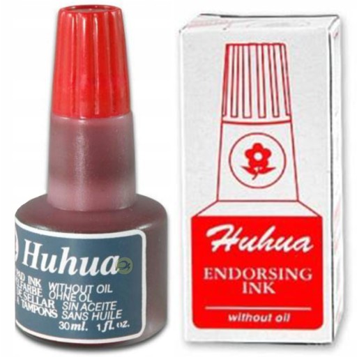 Uniwersalny tusz do pieczątek marki HUHUA, w nieblaknącym czerwonym kolorze: