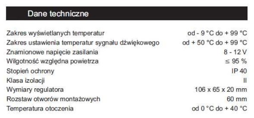 - alarm dźwiękowy informujący o przekroczeniu temperatury