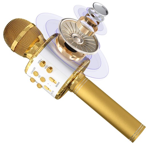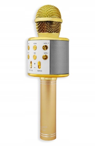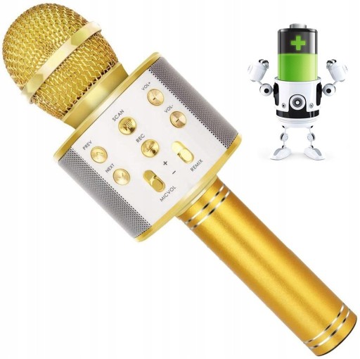 - Mikrofon prezentowany na tej aukcji to idealny pomysł na super prezent dla osoby w każdym wieku bez względu na płeć. Mikrofon występuje w dwóch wersjach kolorystycznych (złoty i czarny). Jeśli nie masz pomysłu na prezent, kup mikrofon który zadowoli nawet najbardziej wymagających fanów muzyki.