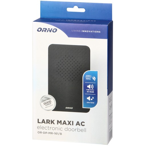 - Dzwonek przewodowy jednotonowy LARK MAXI 230V. Prosty w montażu i wygodny w użyciu dzwonek elektroniczny z regulacją głośności.