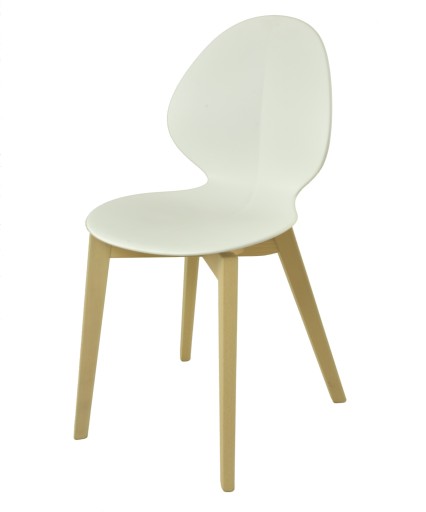 Krzesło jest wykonane z polipropylenu (siedzisko i oparcie) oraz drewna (nogi).