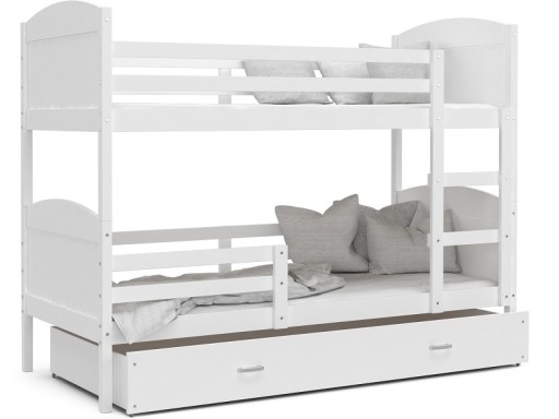 Łóżko piętrowe MATEO 200x80 zostało stworzone z myślą o dobrym śnie rodzeństwa. Stabilna konstrukcja gwarantuje bezpieczne użytkowanie z mebla. Dodatkowym autem jest pojemnik na pościel oferując dodatkową powierzchnię użytkową. Zaokrąglone wstawki oferują poczucie ochrony naszych pociech podczas snu. Łóżko zostało pomalowane ekologicznymi farbami, które są bezpiecznie dla dzieci. W zestawie znajdują się materace piankowe oraz stelaż typu FLEX dbające o dobry sen naszych pociech.