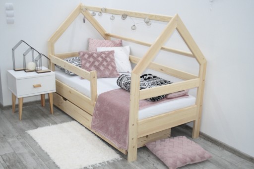 Łóżko wykonane jest w całości z litego drewna sosnowego, wykonanie jest bardzo staranne i dokładne. Łóżko DOMEK jest lakierowane lakierem wodnym ekologicznym , szlifowane i kolejny raz lakierowane - tylko takie wykonanie daje 100% efekt końcowy !