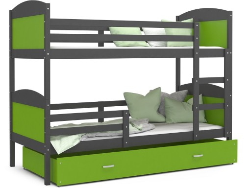 Łóżko piętrowe MATEO 160x80 zostało stworzone z myślą o dobrym śnie rodzeństwa. Stabilna konstrukcja gwarantuje bezpieczne użytkowanie z mebla. Dodatkowym autem jest pojemnik na pościel oferując dodatkową powierzchnię użytkową. Zaokrąglone wstawki oferują poczucie ochrony naszych pociech podczas snu. Łóżko zostało pomalowane ekologicznymi farbami, które są bezpiecznie dla dzieci. W zestawie znajdują się materace piankowe oraz stelaż typu FLEX dbające o dobry sen naszych pociech.