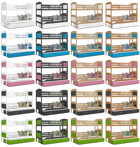Łóżko piętrowe MATEO 3 190x80 jest alternatywą dla dużych rodzin, ponieważ posiada 3 miejsca do wypoczynku. Korpus został wykonany z drewna sosnowego, które gwarantuje wysoką jakość mebla. Stabilna konstrukcja gwarantuje bezpieczne użytkowanie z mebla. Zaokrąglone wstawki oferują poczucie ochrony naszych pociech podczas snu. Łóżko zostało pomalowane ekologicznymi farbami, które są bezpiecznie dla dzieci. W zestawie znajdują się materace piankowe oraz stelaż typu FLEX dbający o dobry sen naszych dzieci.