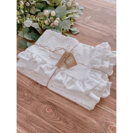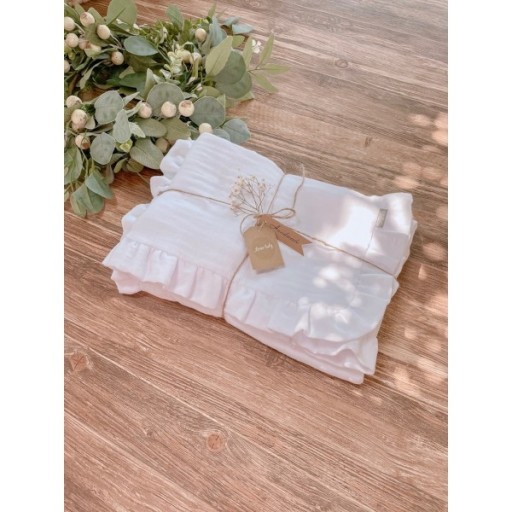 Pościel dziecięca z kolekcji „ECO MUŚLIN” wykona z muśliny w jednolitym kolorze z drobnymi motywami, dodatek stanowi dekoracyjna falbanka. Poszewka kołderki i poduszki z wszyta falbanka nadaje jej niezwykłej klasy . Poszewka poduszki i kołderki zapinana na suwaczek .Całość wykonana z atestowanej muśliny Double Gauz najwyższej jakości . Polska produkcja firmy ARUŚ.