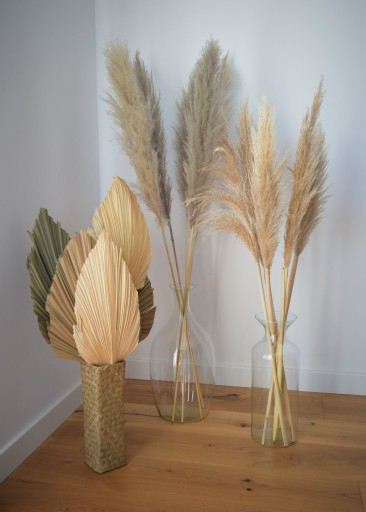 СТЕКЛЯННАЯ ВАЗА XL, БУТЫЛКА ИЗ ПАМПАССНОЙ ТРАВЫ, 45 СМ
