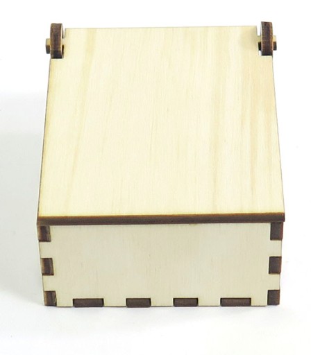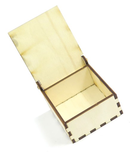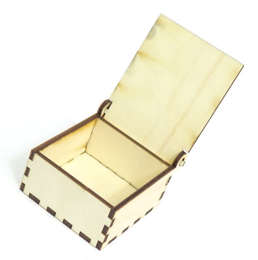 Pudełko ze sklejki o grubości 3mm z otwieraną przykrywką o zewnętrznych wymiarach: 6x6x3cm