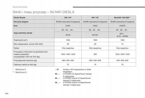 Citroen C4 Spacetourer oraz wersja Grand ( wersje od 2018 - 2022 )