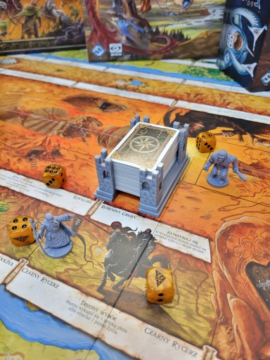 Klimatyczny stojak na karty (mini american 41x63), który urozmaici każdą rozgrywkę, jednocześnie porządkując karty na stole ok 80 szt. Lekki, wygodny, jest w stanie pomieścić karty w koszulkach ok. 50 szt. Idealnie pasuje do takich gier jak: Talisman Magia i Miecz, Runebound czy Descent Wędrówki w Mroku i innych, w których są karty w wymiarze mini american 41x63mm.