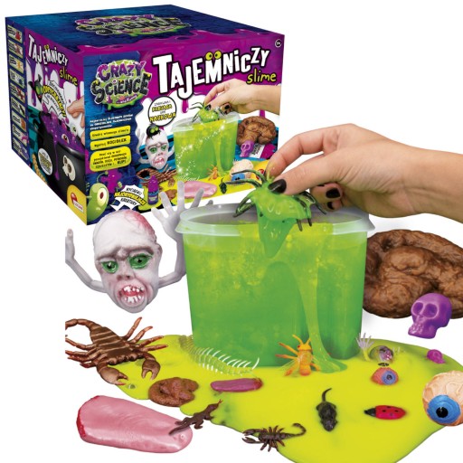 Nowy zwariowany zestaw z serii Crazy Science. Tajemniczy slime pozwala na przeżycie prawdziwego doświadczenia wędkarskiego w połączeniu ze slime. Najbardziej śluzowaty zestaw został stworzony do obrzydliwie tajemniczych eksperymentów. Stwórz własnego Slime'a, wypełnij kociołek i rzuć się w wir poszukiwań okropnych owadów, oczu, potworów, szkieletów i... kup. Zanurz rękę w slime i zobacz jakie potworne elementy wyłowisz!