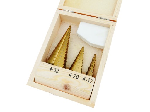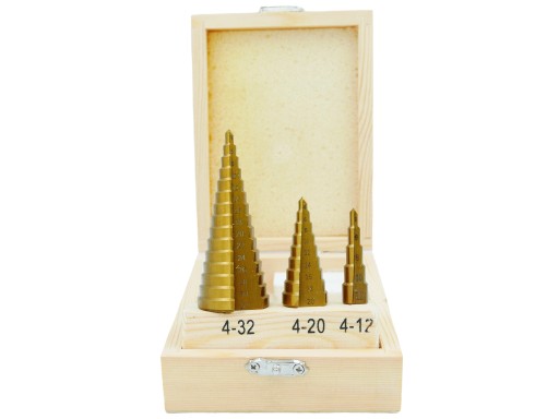 ZESTAW 3 ELEMENTOWY WIERTEŁ STOPNIOWYCH HSS: ZAKRES 4-32 mm