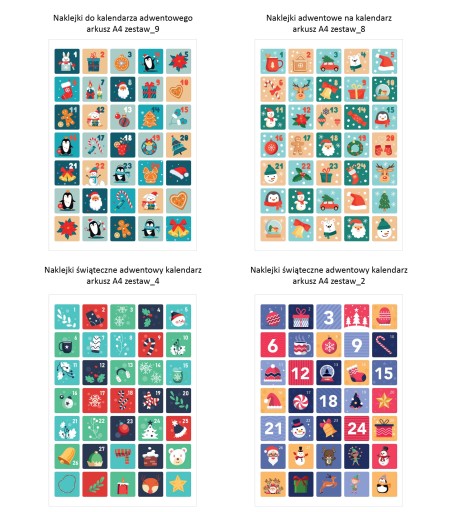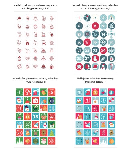 Naklejki świąteczne do kalendarza adwentowego arkusz A4 35 sztuk - różne wzory.
