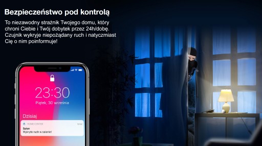 - Detekcja ruchu poprzez pasywny czujnik podczerwieni