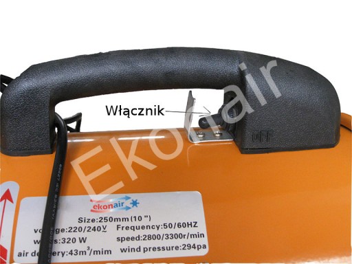 Zintegrowany z uchwytem włącznik umożliwiający łatwe i wygodne włączanie oraz wyłączanie wentylatora.