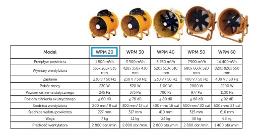 W swojej ofercie posiadamy modele wentylatorów przemysłowych o średnicach: 200, 300, 400, 500 oraz 600 mm.
