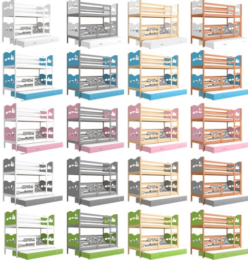 Łóżko piętrowe DAX 3 190x80 stworzone z myślą o dużej rodzinie. Wstawki posiadają oryginalny wzór do wyboru, które dodają uroku w pokoju dziecięcym. Stabilna konstrukcja gwarantuje bezpieczne użytkowanie z mebla. Łóżko zostało pomalowane ekologicznymi farbami, które są bezpiecznie dla dzieci. W zestawie znajduję się materac piankowy oraz stelaż typu FLEX.