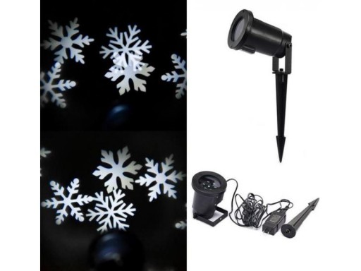 Ogrodowy projektor LED wyświetlający płatki śniegu. Dzięki dołączonemu szpikulcowi w prosty sposób zainstalujesz go w ogrodzie. Wystarczy że podłączysz wtyczkę do gniazdka i możesz cieszyć się pięknie podświetloną elewacją. Projektor można również zamontować bezpośrednio do elewacji czy podłoża bez wykorzystania szpikulca.