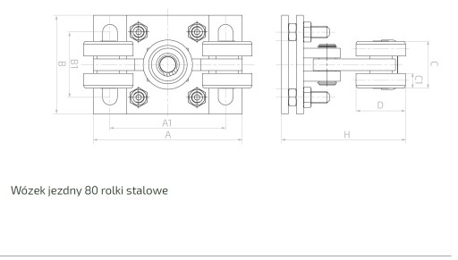 Pakiet wózków 80x80x5 do bramy przesuwnej, 5-rolkowy, rolki stalowe + ŻYWICA NIEMIECKA SCELL 300ml z mieszaczem
