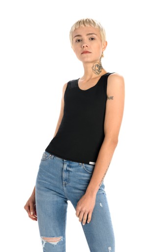 - Dekolt półokrągły, lekko większe podcięcia pod pachami.