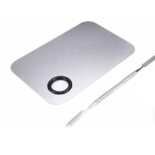 Solidna paleta do mieszania kosmetyków, która została wykonana ze stali nierdzewnej, co ułatwia jej czyszczenie. Paletka do mieszania kosmetyków to niezbędne akcesorium dla kosmetyczek, wizażystek, a także osób, które potrzebują produktu do codziennego użytku.