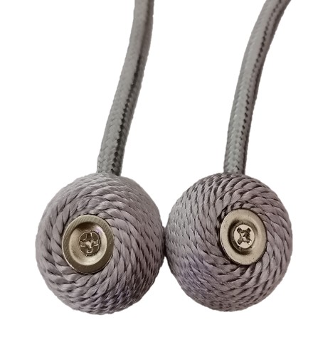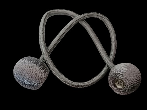Spinka na magnes do upinania firan, zasłon czy też makaronów. Wykona jest z grubego sznurka ,posiada magnetyczne zapięcia trwałe i wygodne w użyciu. Upięcie jest proste w montażu można je łatwo zakładać dzięki magnetycznemu zapięciu.