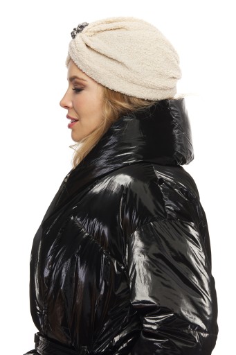 ШАПКА-ТЮРБАН, ТРИКОТАЖНЫЙ ФЛИС, бежевые кристаллы
