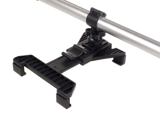 Wysokiej jakości samochodowy uchwyt uniwersalny do tabletów montowany pomiędzy siedzeniami do wsporników zagłówka w fotelu kierowcy i pasażera.