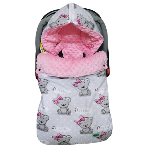 - Śpiworek uszyty jest z 4 warst: bawełna, wartswa nieprzemakalna, włóknina, minky lub velvet.