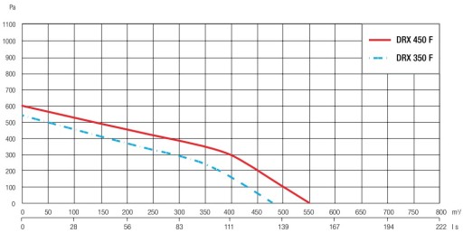 - Maksymalny przepływ przy 200 Pa : 450 m3/h