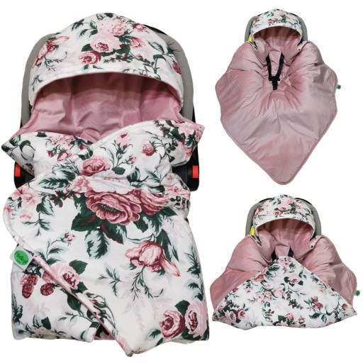 - Koc posiada otwory na 3 i 5-cio punktowe pasy bezpieczeństwa. Pasuje do fotelików, nosidełek i wózków.