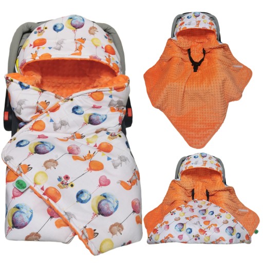 Koc otulacz wodoodporny do nosidełka, fotelika, wózka z ozdobnymi uszkami i kapturkiem