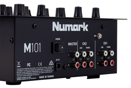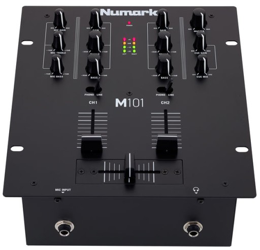Podstawowa funkcja miksera jest dodatkowo wspierana przez wbudowaną korekcję brzmienia, aby dostosować je do panujących warunków akustycznych. Mikser posiada dwie pary wejść ze zmienną czułością (Phono/Line), crossfader, wejście mikrofonowe 1 oraz liniowe wyjście RCA. M101 może zostać zainstalowany w racku, oferując legendarną wytrzymałość Numark.