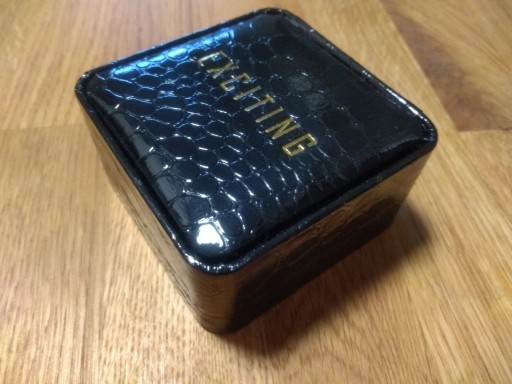 - Spinki są zapakowana w ładne pudełko do spinek Exciting o wymiarach 70x70x40 mm i strukturze czarnej skóry węża na zewnątrz, oraz wyłożone białą satynową tkaniną wewnątrz.