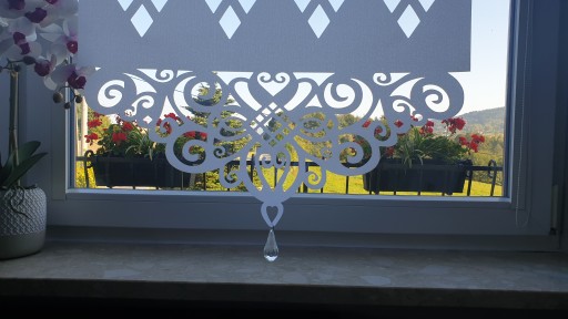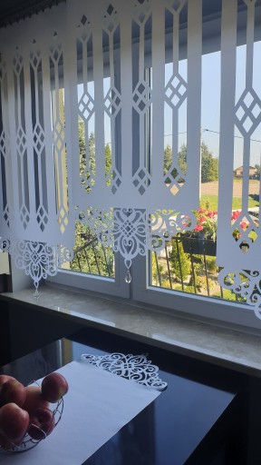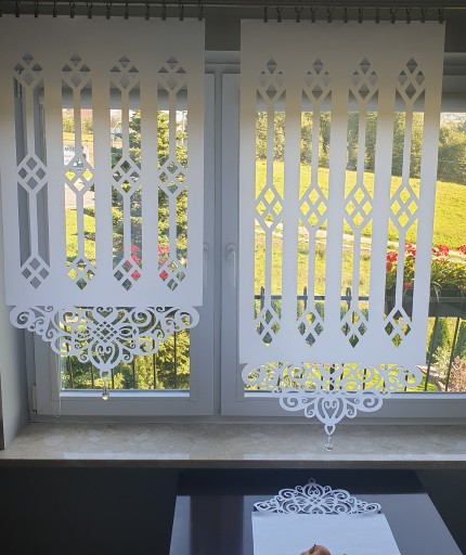 Okienny panel gotowy, ekran, dekor ażurowy do firan, wykonany z wysokiej jakości materiału (lekko usztywnianej tkaniny poliestrowej).