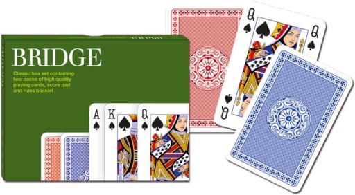 Klasyczne karty do gry w brydża Piatnika z serii "New Classic". W komplecie 2 talie oraz lista do zapisywania wyników, idealne do gry w brydża.