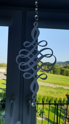 Cena dotyczy 1 sztuki zawieszki podwójnie klejonej z usztywnieniem dowolnie wybranego wzoru i koloru z ozdobnym diamentem oraz łańcuszkiem kryształowym o długości ok. 33 cm.