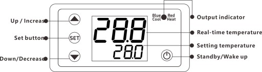 - Dwukolorowa dioda informująca czy urządzenie działa w trybie grzania czy chłodzenia. Migająca dioda świadczy o trybie opóźnienia grzania bądź chłodzenia ( dioda czerwona bądź niebieska)