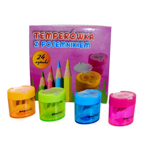 Temperówka świetnie nadaje się do szkoły, biura, czy domu. Podwójna temperówka z pojemnikiem na odpadki wykonana jest z tworzywa sztucznego. Posiada 2 rozmiary ostrzy:
