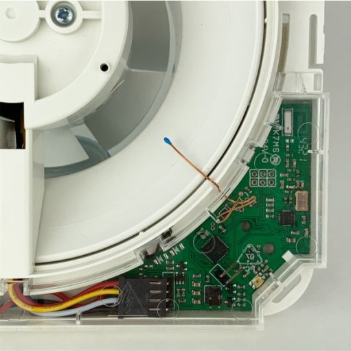 2. sensor wilgotności kontroluje powietrze, uruchamiając tryb "tylko wylot" oraz zwiększając maksymalnie obroty wentylatora w przypadku podwyższonego poziomu wilgoci w pomieszczeniu.