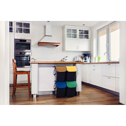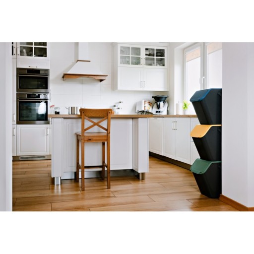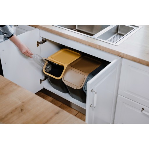 Dzięki swoim niewielkim wymiarom kosze idealnie zmieszczą się też do szafki pod zlew. ich modułowość pozwala na połączenie w potrójny zestaw, który można ułożyć jeden na drugim, dzięki czemu zajmie niewiele miejsca. Zaokrąglone ranty pojemnika ułatwiają jego czyszczenie dzięki czemu używanie worków jednorazowych nie będzie konieczne.