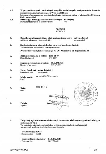 PRAWDZIWA HOMOLOGACJA EUROPEJSKA E20: