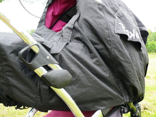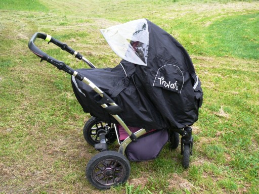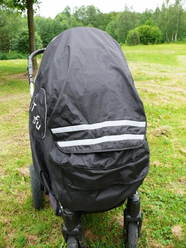 Tinkafu osłona do wózka na gondolę i wersję spacerową; nosi niewielkie ślady używania głównie na folii, która nie jest już tak przejrzysta kiedy była nowa; ma też niewielkie zagniecenia ale bez dziur (uszkodzeń)